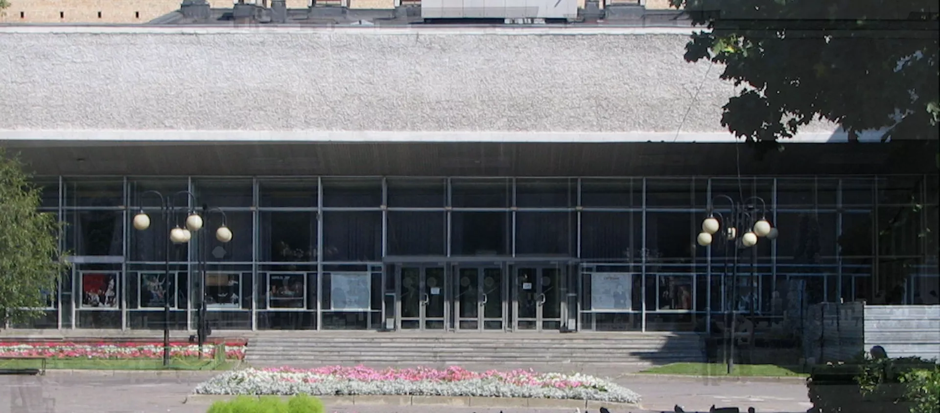 Дар бинои нав аркаи хоси росткунҷае боқӣ монд, дар пештоқ панелҳои чӯбӣ (санавбари сафед ва чормағзи сиёҳ) ва мармари сиёҳ нигоҳ дошта шудаанд.