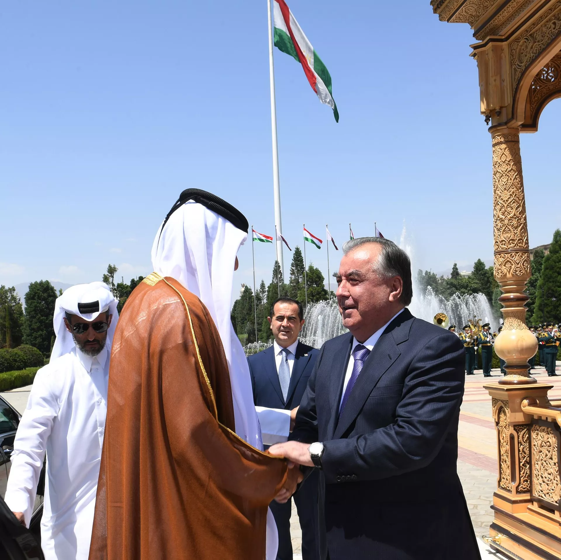 ДУШАНБЕ, 8 июн — Sputnik. Маросими истиқболи расмии амири Қатар шайх Тамим ибни Ҳамад Оли Сонӣ дар назди Қасри миллат баргузор гардид.