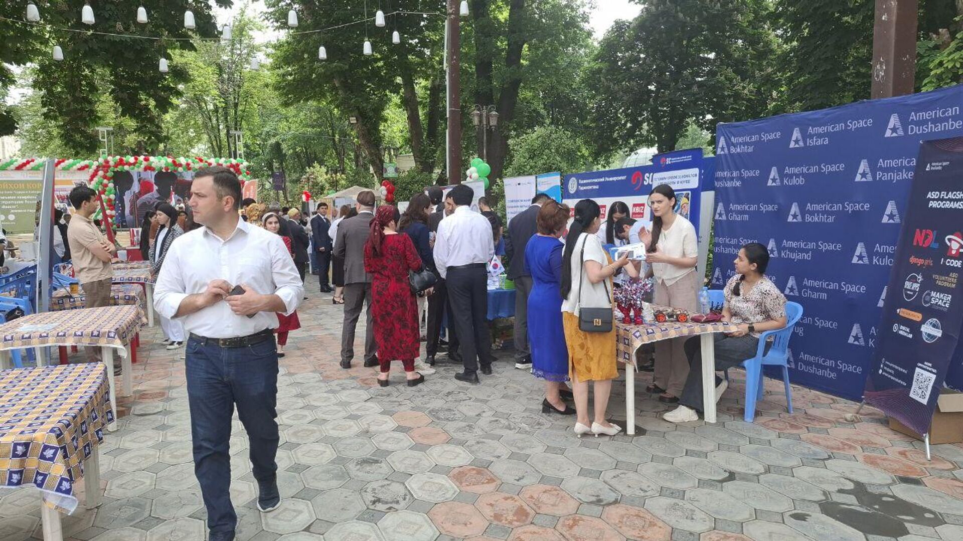 ДУШАНБЕ, 1 мая — Sputnik. Дар боғи Куруши Кабири шаҳри Душанбе бахшида ба 1 май - Рӯзи байналмилалии якдилии меҳнаткашон дар шаҳри Душанбе нахустин ярмаркаи калони ҷойҳои кори холӣ ва вазифаҳои озод баргузор шуд.