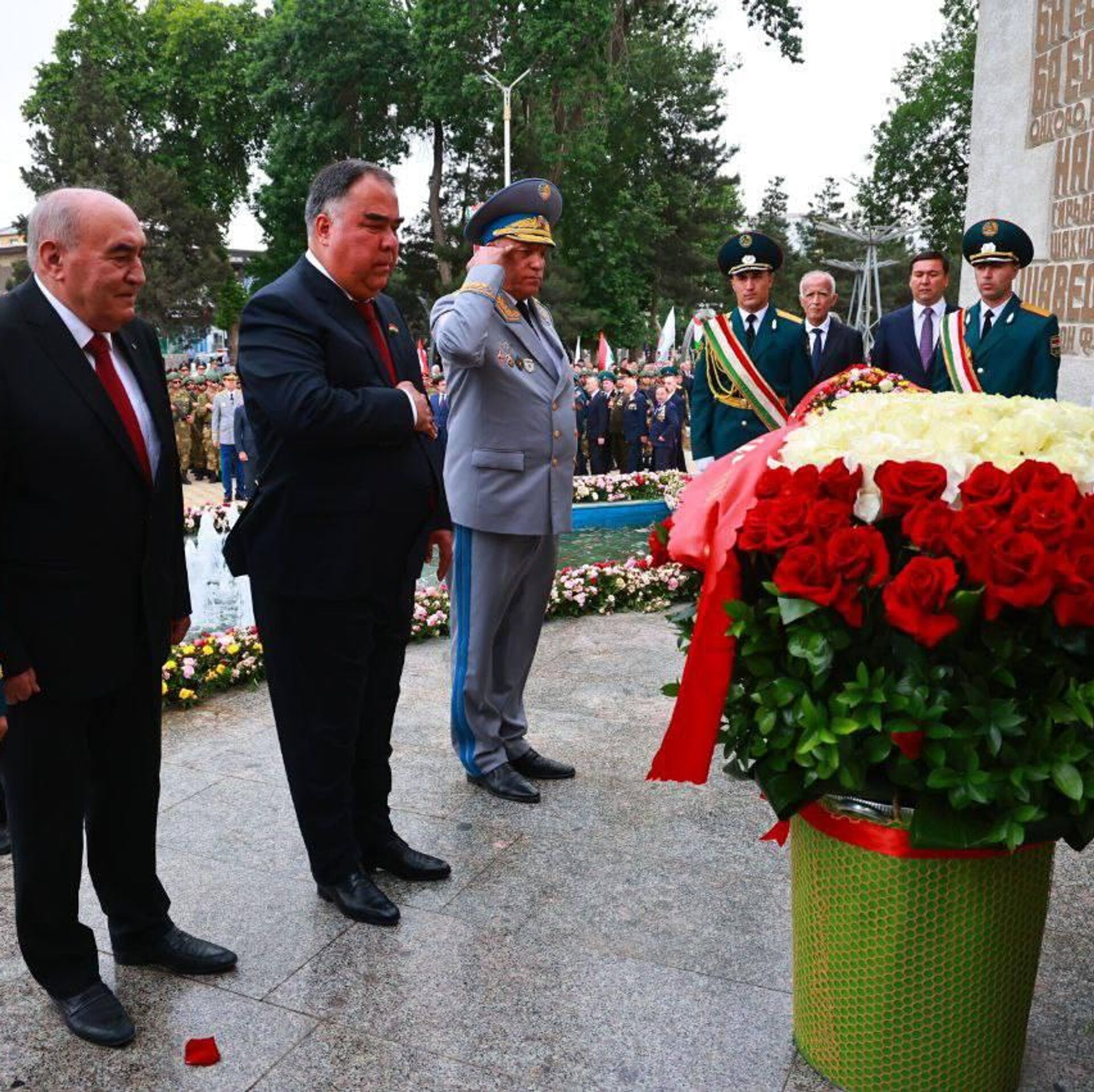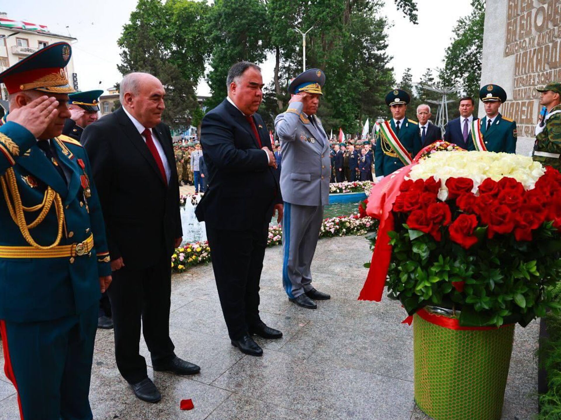 ДУШАНБЕ, 9 мая — Sputnik. Дар шаҳри Хуҷанд рӯзи 9 май бо шукуҳ бо гузшти низомӣ ва гулгузорӣ бар пояи муҷассамаи шаҳидони Ҷанги Бузури Ватанӣ 80-умин солгарди Рӯзи Ғалаба таҷлил карда шуд.