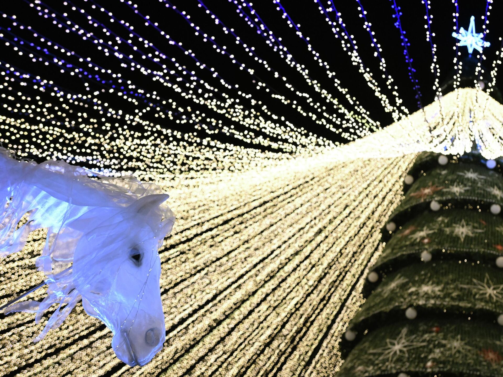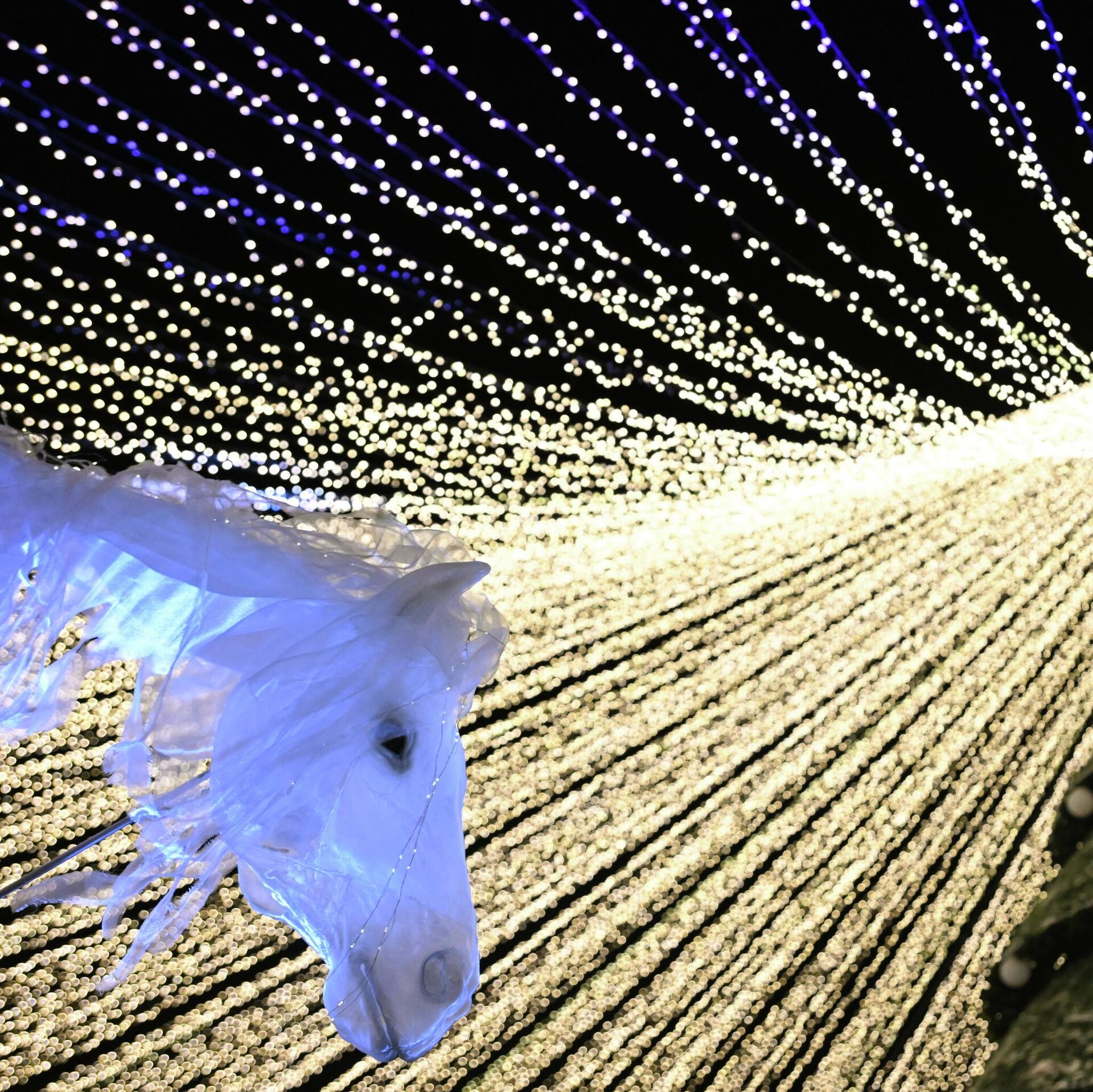 Муҷассамаи яхӣ "Навозиши аспҳои ваҳшӣ"-и рассоми муғул Бозорсад Баярсайхон пас аз ишғоли ҷои дуюм дар фестивали байналмилалии муҷассамаҳои яхӣ бо номи "Санъат бо ях вомехӯрад" дар Боғи ҳайвоноти Коркеаасари дар Ҳелсинки, Финландия, моҳи феврали соли 2014 аксбардорӣ шудааст.