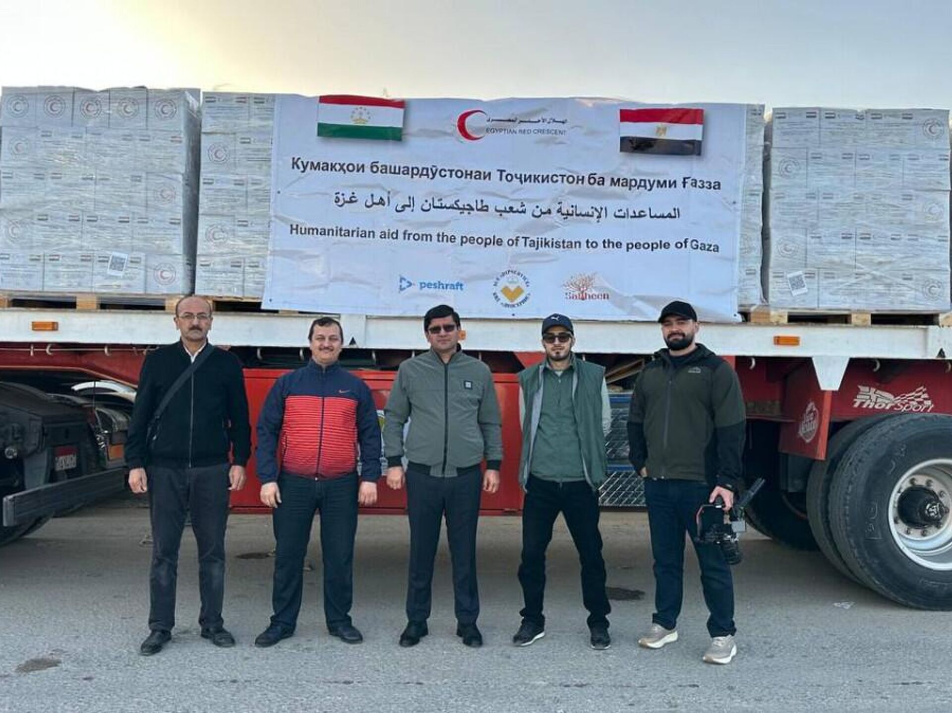 “Корвони кумакҳои Тоҷикистон иборат аз маводи хӯрокӣ, либоси гарм, хайма ва плёнкаҳои обногузар дар 6 мошини калони боркаш аз тариқи гузаргоҳи Рафаҳ дар марзи муштараки Миср ва Фаластин бо ҳузури сафири Тоҷикистон дар Миср ва намояндагони муассисаҳои хайрияи Тоҷикистон ба дохили Ғазза интиқол дода шуд”, - қайд кардааст вазорат.