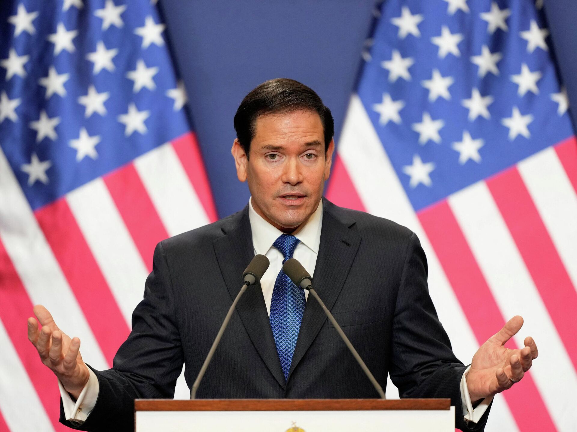 "Иёлоти Муттаҳида ба қатъи ҷанг манфиатдор аст ва мо мехоҳем ҳама кори аз дастамон меомадаро кунем, то ин кор амалӣ шавад. Мо ягона миллате дар рӯи замин ҳастем, ки метавонем ҳарду ҷонибро ба мизи музокирот оварад... Мо кӯшиш намекунем, ки ба касе созишнома бандем. Мо кӯшиш намекунем, ки касеро маҷбур кунем, ки созишномаеро ба имзо расонад, ки ҳеҷ кас намехоҳад. Мо танҳо мехоҳем ба онҳо кӯмак кунем", - гуфт Рубио дар нишасти матбуотии муштарак бо сарвазири Маҷористон Виктор Орбан дар Будапешт.